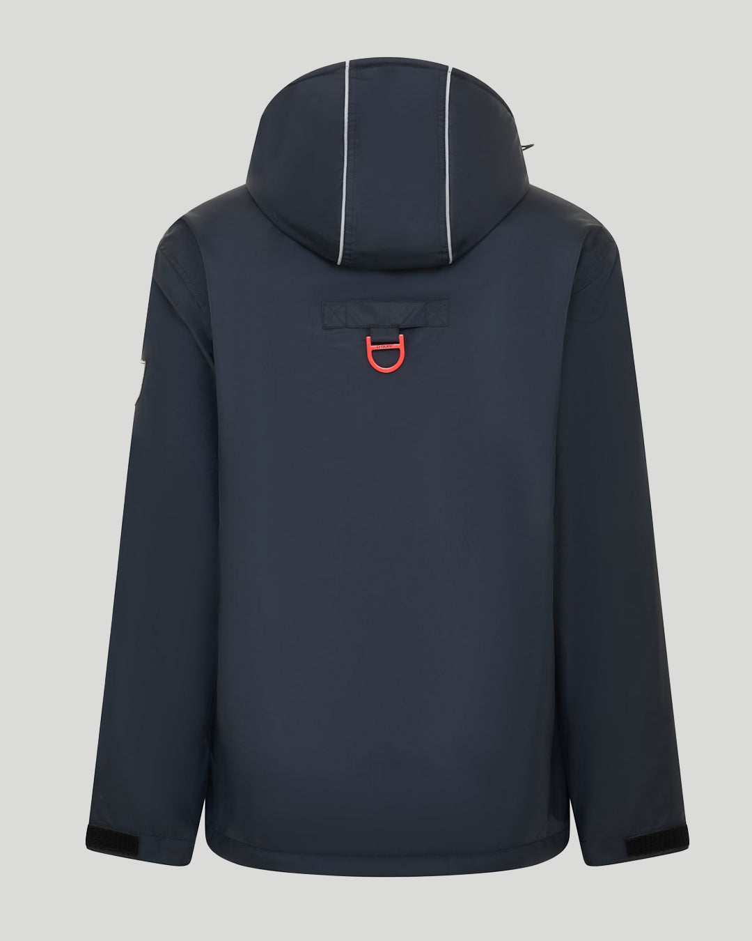 - Toggle-adjusted hood, with full coverage and a reinforced front, and Velcro adjustable sleeve cuffs